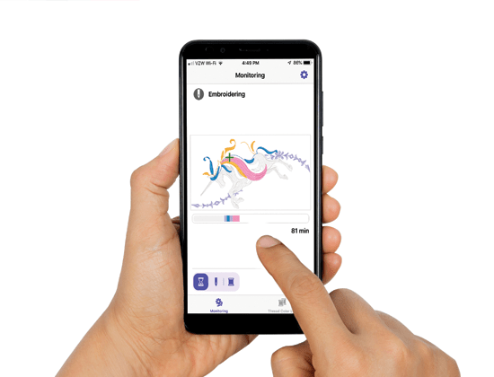 • Follow the progress of your project and get alerts with the My Stitch Monitor mobile app on your iOS or Android™ device.