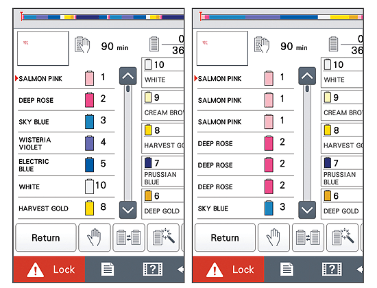 • When combining designs, you can be even more efficient by having the machine sort the stitch order by color which reduces color changes and needle bar movement to minimize embroidery time.